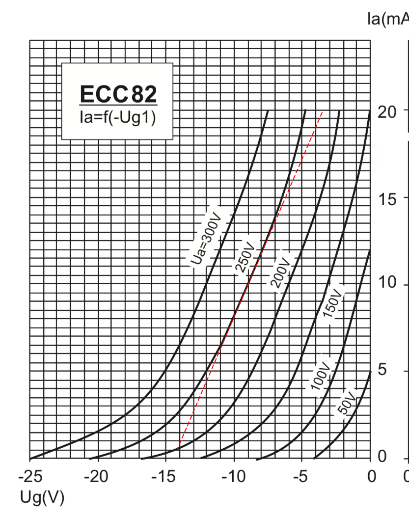 Mittausasetukset: Vf 6,3V, -Vg1 8,5V, Va250V, Ia 10,5mA ja S 2,2mA/V. (ECC802, s-versiota en löytänyt)