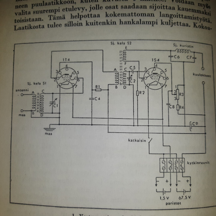 Kirjassa on myös aika minimalistisen 2- putkisen paristovastaanottimen rakennusohje.
