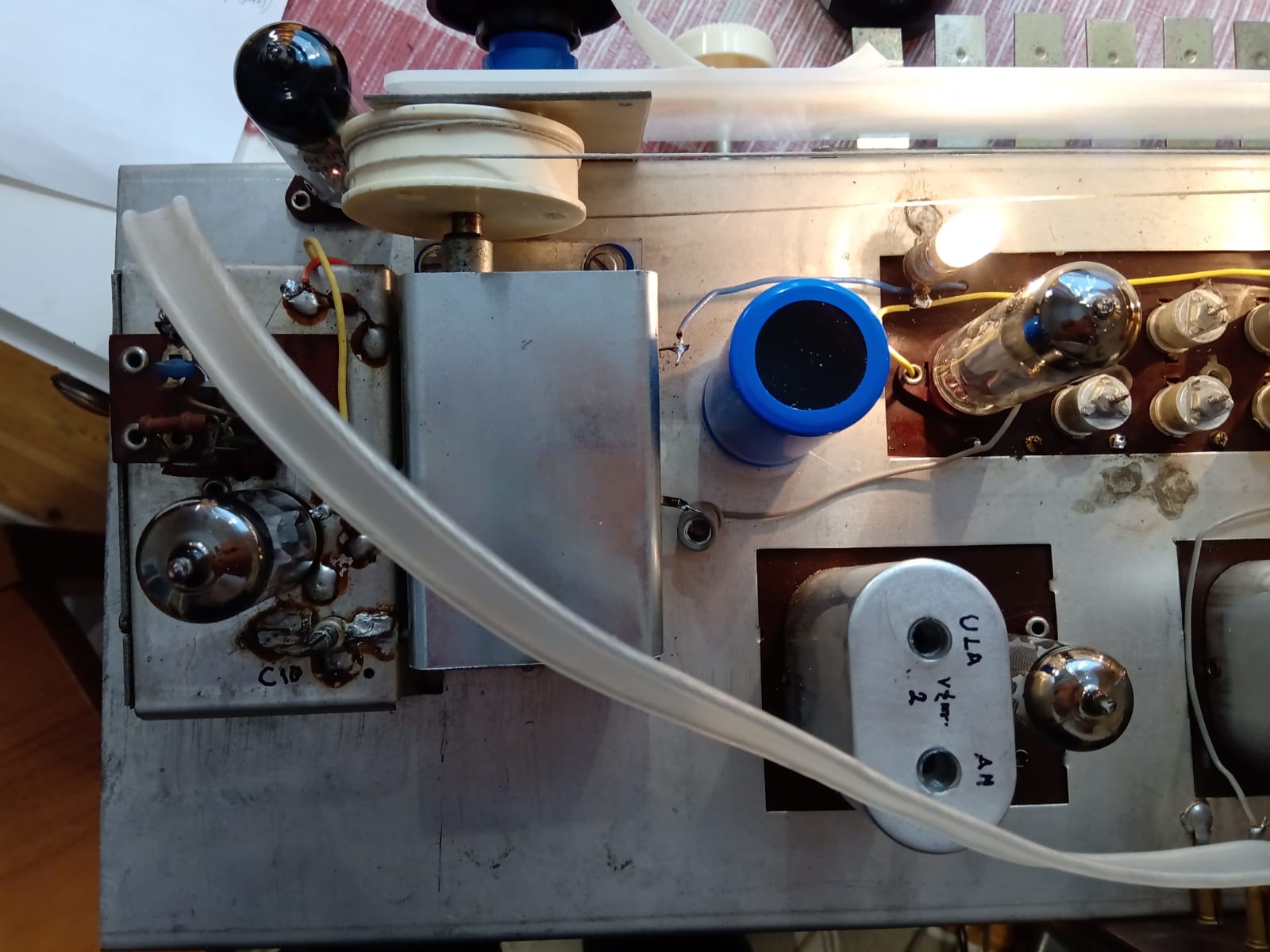 Sen jälken on syytä virittä koko 10,7MHz välitaajuusosa ja lopuksi tarkistaa ilmaisimen symmeria (nollakohta). Viritys aloitetaan ilmaisimen ensiöstä ja edetään kohti ECH81. 10,7MHz sigaalin voi syöttää ECH81 g1 hilalle (pin2). Lopuksi signaali siirretään ULA ECC85 1. st triodin anodille ja viritetään 2. anodilla olevat 10,7MHz suotimen molemmat piirit.