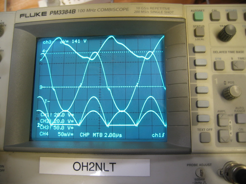 Muuntaja kiinni ja ajoon. Tarkkasilmäinen huomaa skooppikuvassa jotain outoa.