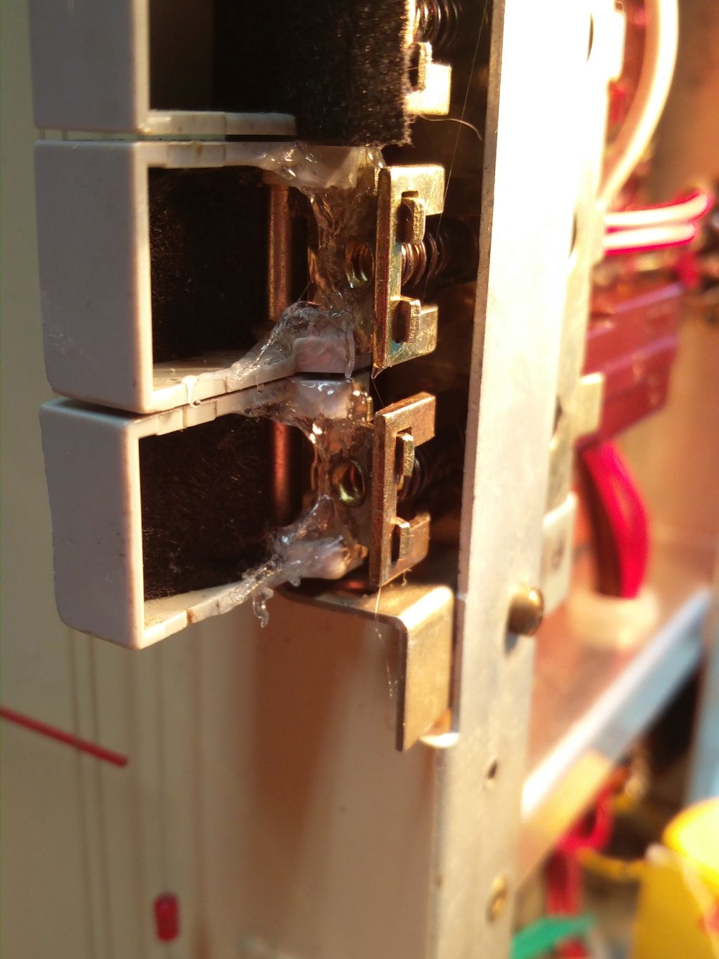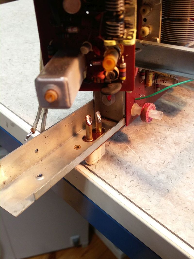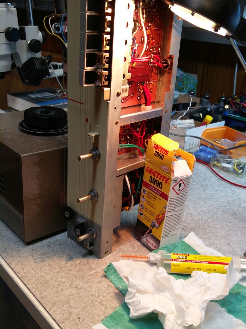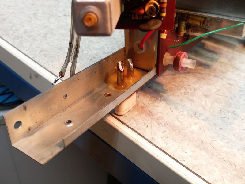 Ensimmäisenä antenniliitin. Pertinax pitänyt, mutta liitinholkki katkennut niittauksesta.