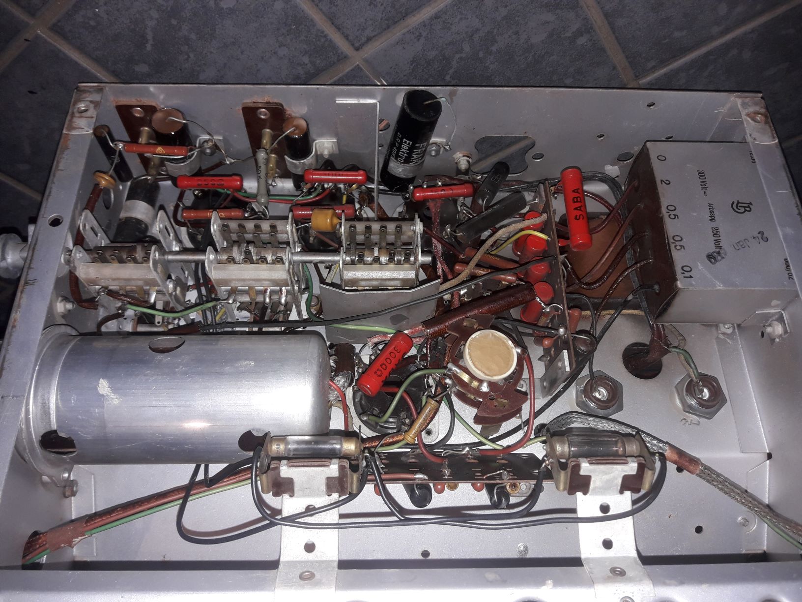 Jatkoin projektia purkamalla radion osiin ja puhdistamalla koneistoa. Kaikki vaikuttaisi aika alkuperäiseltä ja kotelon sisältä löytyi päiväys tammikuulle 39. Tuskin on paljoa tarvinnut osia vaihdella kun konkissa ja vastuksissakin lukee edelleen saba. Yhden putken epäilisin kuitenkin olevan rikki päätellen siitä, kun muissa Telefunken putkissa on jonkinlainen metalli "kuorrute" mutta tästä se on hilseillyt pois ja putkea käännellessä sisältä kuuluu rapinaa. Tämän putken tyyppi on ABC 1.