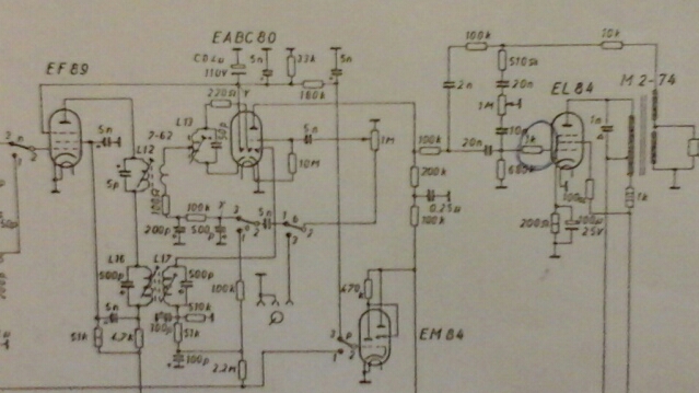 Terve. Katselin tuon asa 769 kaaviota ja mittailin vastutksia. Tuossa pääteputken hilalle menevässä johdossa on 1k vastus, mutta radiossa on 24k vastus, joka näyttää kyllä alkuperäiseltä. Joissain muissa malleissa on myös 1k ja toisissa 24k vaikka kytkennät ovat muuten jokseenkin yhdenmukaisia.