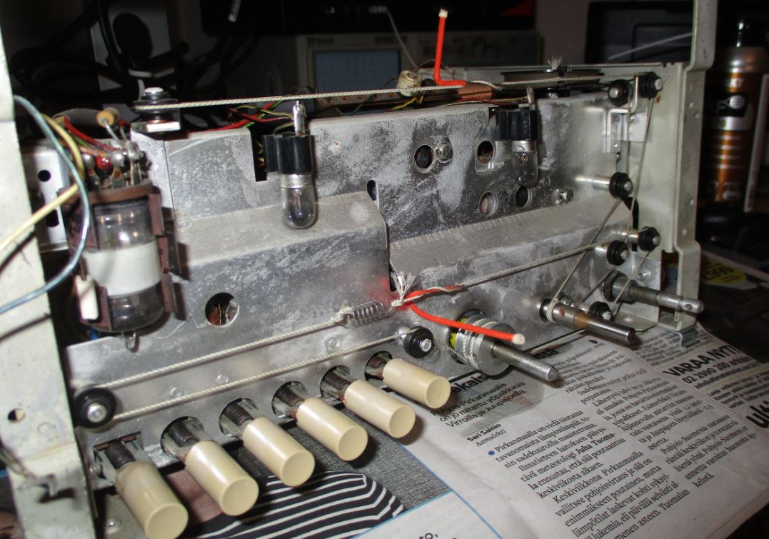 Wegan löysin kirpparilta ja näytti sen verran erikoiselta että kotiin ja kunnostamaan. Puhdistuksen, voiteluiden yms, jälkeen asemasäädöt alkoi toimimaan samoin painikkeet. Lasiputkien 2kpl sulakepohjat uusin, oli hapettuneet. Pääteputken katodikondensaattori oli vuotanut, uusin sen. Lisäksi häiriönpoistokonkat 2kpl. Ja virrat päälle ja alkoi soimaan ihan hyvin. Putket oli ehyet. Merkkivalot myös.
