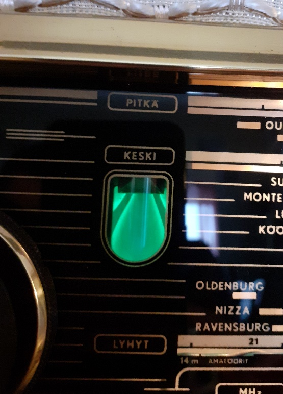 Viritysviuhka aukeaa nyt kuvan osoittamalla tavalla, kun lähete on mahdollisimman voimakas (pien-FM -lähetin radion antennin vieressä). Keloihin en uskalla koskea, kantapään kautta oppineena.