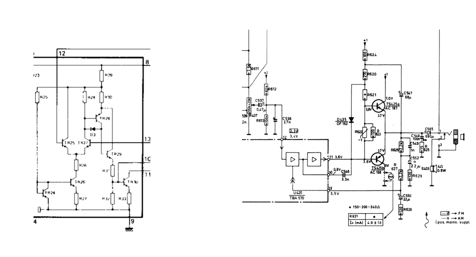 kytkis Kokonaan ja toisessa kuvassa päätetrankun ja TBA'n sisällä oleva niitä ohjaava kytkentä. Tuo IC-kytkentä on 'klassikko', jolla toteutetaan hifi-vahvareita.
