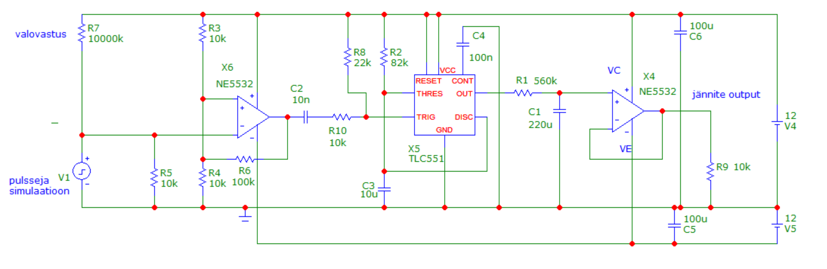 piirit protossa NE5532 ja 555. Voi olla, että jokin fet input opva voisi olla parempi kuin NE5532. Kiitos Urkille vinkistä ... olen microcapissa aloittelija.