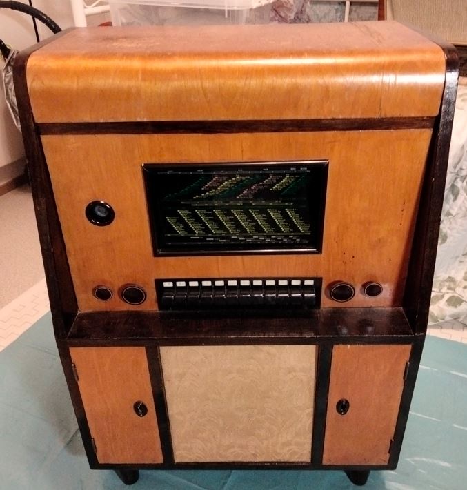 Korjasin mielenkiinnosta radiota ja levysoitinta kohtaan, tämän kuvan kaapin. Siitä olisi tiedustelua että kukahan mahtaisi olla radiokoneiston tekijä tai tekijätehdas,, ja kenen valmistama levysoitin. Radio voi olla myös osista tehty? Kaappi on kuitenkin omatekemän jonkun 40-50 luvulla.