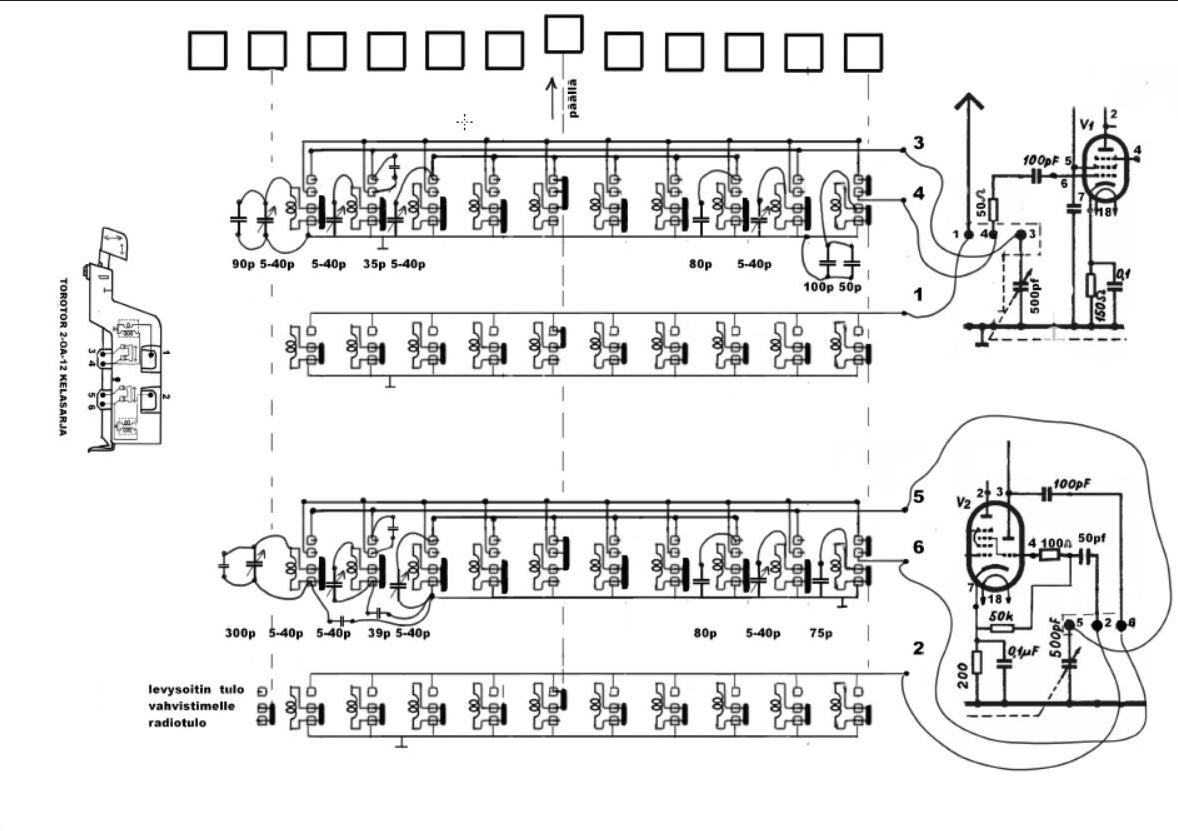 Näppäin-kelasarjasta raapustelin kuvaa. Induktanssiarvot vielä mittaamatta kuvaan.