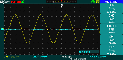 Lähdössä on 2,2 Vdc komponentti.
