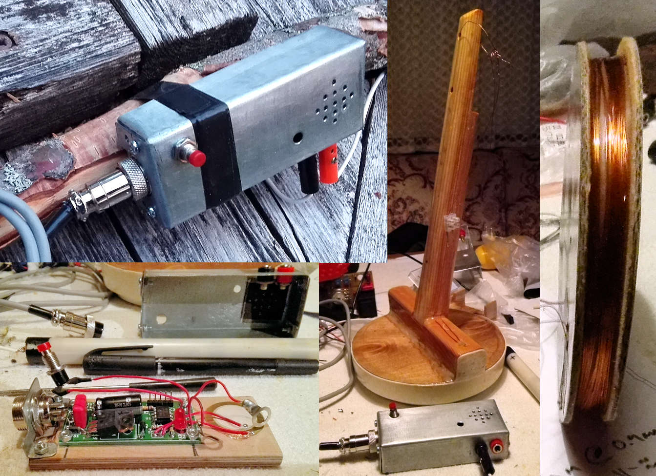 Vielä tarpeettomasti kuvakooste mainitusta rakennussarjasta (josta kokonsakin puolesta tekee helposti myös nk. pinpointerin; siksi tuossa tuo laadukkaampi kelan liitinkin käytössä). Kelakoteloinnin varsi tuli sitten kuitenkin kiinni liian jyrkässä kulmassa, siksi on laitettava ei-metallinen nivel hieman ylemmäs.