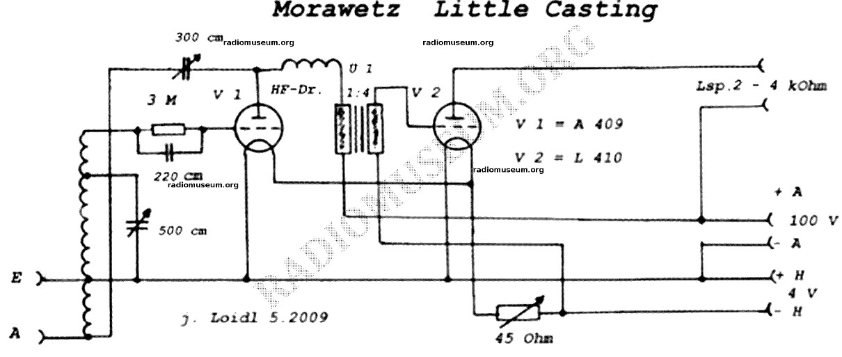 Tähän kytkentään kun vertaat niin uskoisin tuon aukeavan enemmän, ei varmaan suoraan samanlainen mutta samoja periaatteita. Audiomuuntaja kytkentä pääteputkelle ilmaisimelta/rf-etuvahvistimelta/regeneraattorilta/audiovahvistimelta (paljon hommia ensimmäisellä putkella).